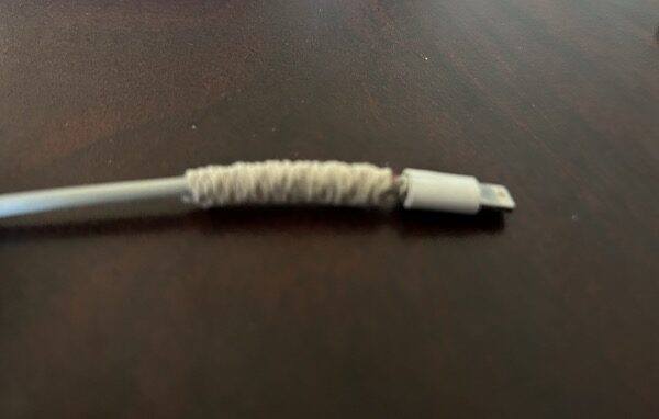 最後用打火機將線頭收緊,這樣修復好的充電線就很耐用了。如果想要美觀可以選用自己喜歡的細線繩。