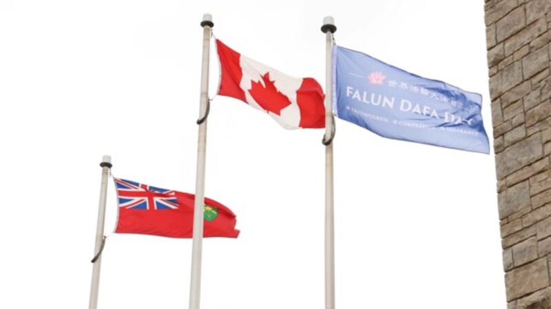 【新!唐!人:北京時間2023年05月03日訊】今年是法輪大法洪傳世界31周年,慶祝活動遍及加拿大。全國將有19個城鎮,舉辦升旗儀式或在地標建築物點亮彩燈。米爾頓市率先升旗慶祝。