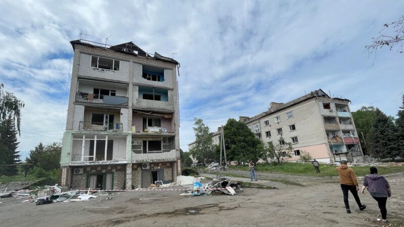 一段簡短的視頻中,靠近烏克蘭邊境的小鎮科津卡,田野和建築物冒起濃煙。