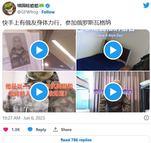 【新!唐!人:北京時間2023年06月08日訊】中共官媒屢屢为俄羅斯入侵烏克蘭站台,社媒屢傳大陸小粉紅赴俄參戰。日前一名狂熱小粉紅在快手平台發視頻,自稱已加入俄國瓦格納軍團,並向美國叫陣,結果被快手封號。