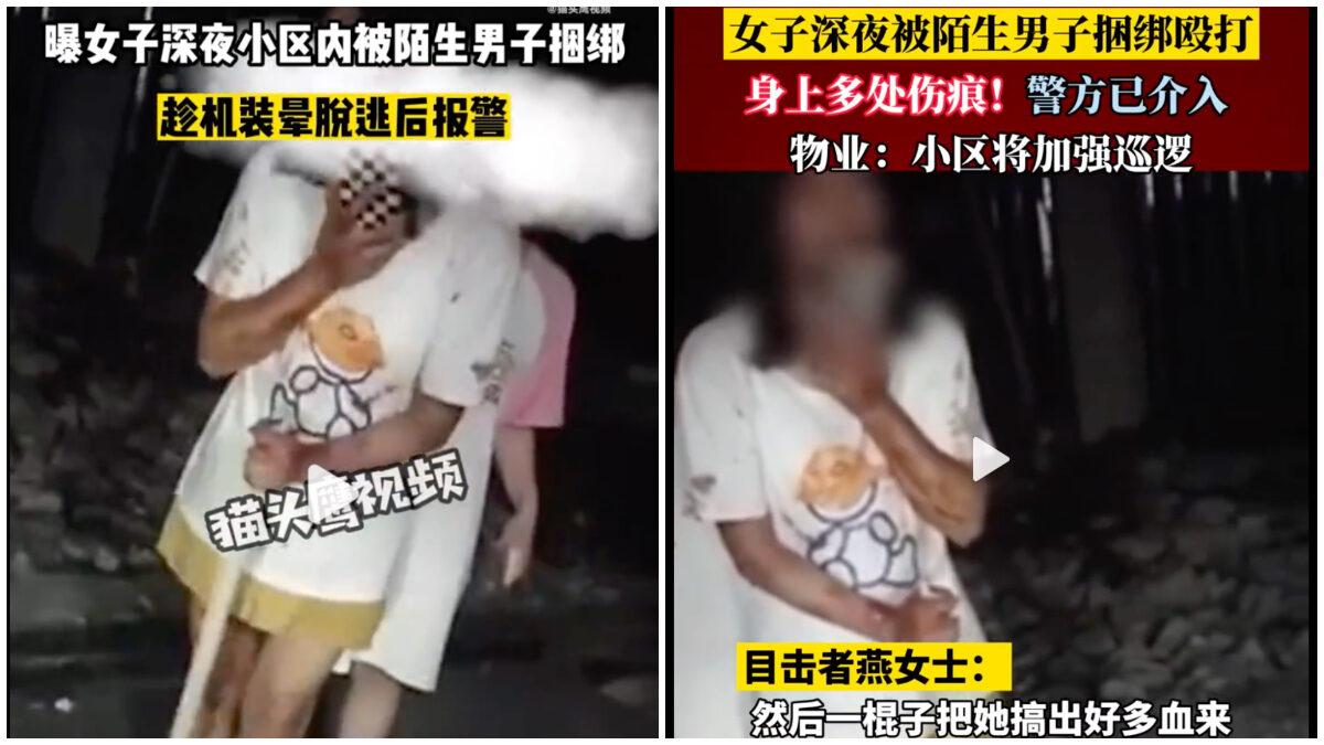 【新!唐!人:北京時間2023年07月12日訊】大陸失蹤案頻發。江西宜春一女子自曝,在小區裡遭遇一名陌生男子捆綁毆打,被棍打後假裝昏迷才得以逃脫,消息出來後不少網友直喊「可怕」。轄區派出所稱,正在調查。