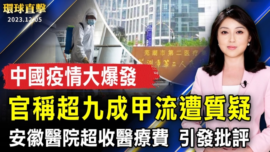 【新!唐!人:北京時間2023年12月05日訊】中國疫情大爆發 官稱超九成甲流遭質疑; 華南四旬教授血癌亡 遺言調研揭中共疫苗真相;安徽醫院超收醫療費 引發批評;中國偷渡客激增 美德州州長警告「非常危險」;厭倦政治?被TikTok左右?台大選年輕人受矚;最繁忙購物季到來 新技術助美郵政公司提效率。