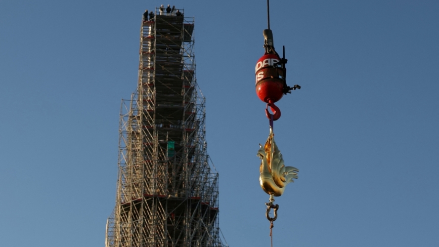 【新!唐!人:北京時間2023年12月18日訊】上週六(12月16日),法國巴黎聖母院塔尖的公鷄風向標被重新安放,標誌巴黎聖母院的修復工作又向前邁進一步。