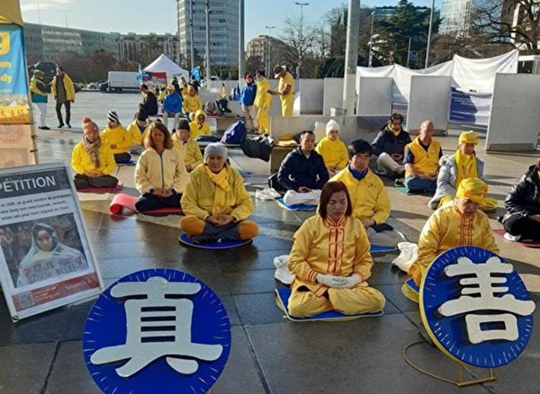 1月22日和23日,來自歐洲各國的部分法輪功學員於日內瓦聯合國萬國宮廣場和日內瓦市中心舉行了講真相反迫害活動。