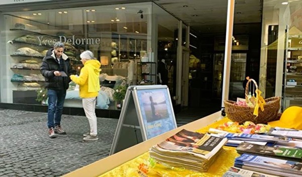 Brigitte是一名瑞士法輪功學員,她表示,人們聽聞迫害的事情感到震驚,他們都在認真地傾聽和了解,並表示支持反迫害。