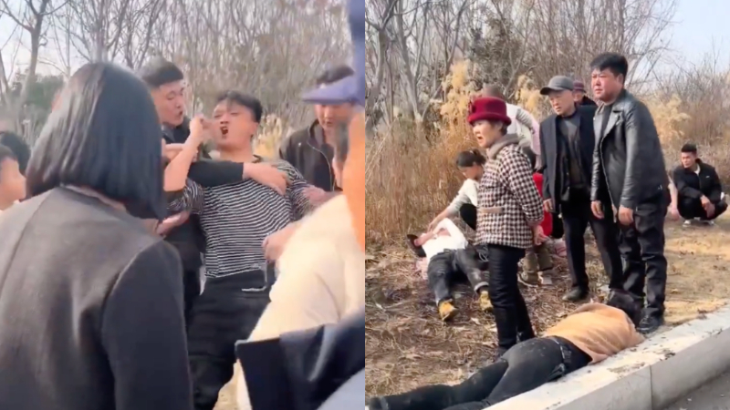 網傳視頻顯示,在一處馬路邊,躺倒了幾個人,有男有女。一名年輕男子臉紅脖子粗的在一旁怒罵,還對著地上一個躺倒的老人磕頭,嘴裡說著什麼「我記一輩子仇」,還說「今天我沒喝多······」
