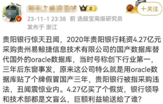 據公開的資訊,今年2月19日,貴陽銀行遵義分行因虛增存貸款,又被罰款35萬元;去年11月,貴陽銀行曾耗資4.27億元從貴州易鯨捷信息技術有限公司採購國產數據庫,但至今都沒正式上線,最後還重新採購了美國甲骨文的數據庫,引發外界強烈質疑。其先前所購易鯨捷產品被指是貼牌假冒偽劣產品,整個採購過程被指「有貓膩」。