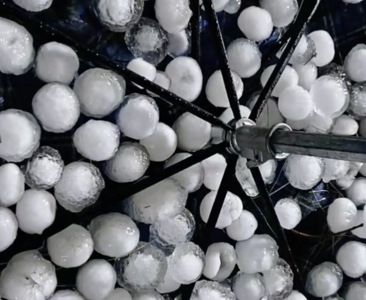 有市民說,在回家的路上被冰雹「突襲」,大的有雞蛋那麼大,太罕見了,雨傘差點被砸穿。