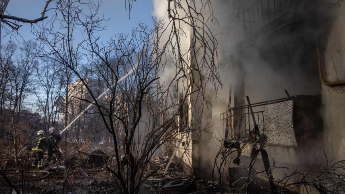 基輔市長克里契科(Vitali Klitschko)在通訊平台Telegram上說「飛彈碎片掉落斯維亞托申斯基區(Sviatoshynskyi)一處幼稚園」,還說其它地區的一棟公寓大樓和多輛汽車起火,緊急救難人員趕赴現場。