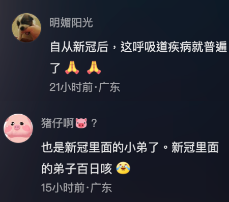 豬仔啊:「也是新冠裡面的小弟了。新冠裡面的弟子百日咳。」