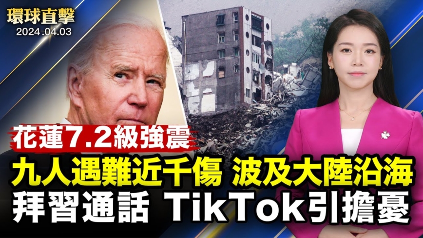 【新!唐!人:北京時間2024年04月04日訊】花蓮強震撼動全台灣 九人罹難近千人傷;官方熱炒消費品以舊換新 民眾質疑割韭菜;白宮:拜登向習提出美國擔憂TikTok;美日下週華府峰會 將強化半導體合作;神韻台北首場熱烈回響 律師:體悟人來世真諦。