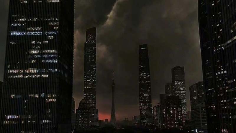 大陸社交媒體上,流傳多個廣州極端天氣的視頻,其中一個是10秒記錄暴風雨來臨時畫面。廣州再度上演白天夜間無縫切換。