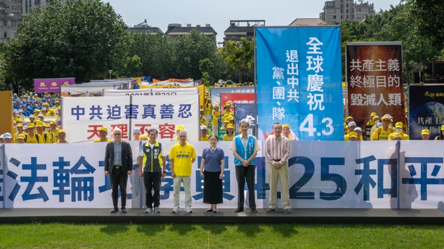 來自台灣各地的法輪功學員,齊聚台中惠來公園,紀念25年前發生在中國大陸「4·25」和平上訪事件。多名政要出席到場表達支持。