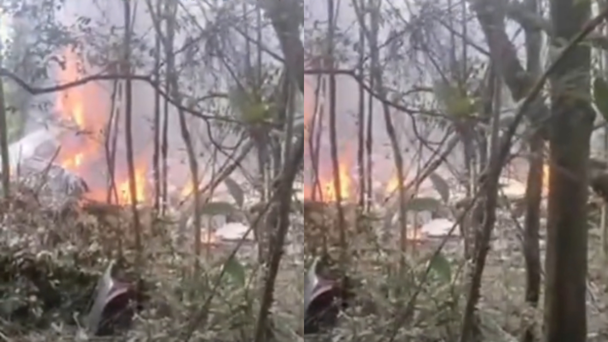 網傳的視頻顯示,飛機墜落在一處山上,現場一片火光,四處散落著的飛機碎片。有人在視頻中說,「特大新聞,飛機掉這裡著火了。」