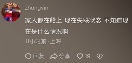 許多網友表示:「家人都在船上,現在失聯狀態,不知道現在是什麼情況啊。」