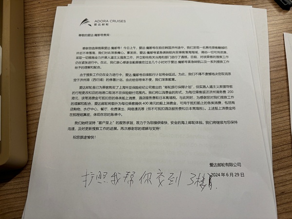 另一段視頻中,廣播員說,大家上午好,現在風較大,能見度有限,來自中國的直升機和貨船已經在協助搜救。由於這起意外事件,遊輪的後續航行計劃不得不延遲,取消了停靠韓國濟州島的計劃,下一站將停靠日本長崎島。