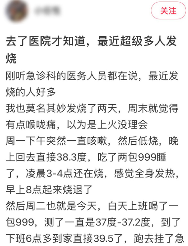 同日,有網友在小紅書平台分享說,「去了醫院才知道,最近超多人發燒」