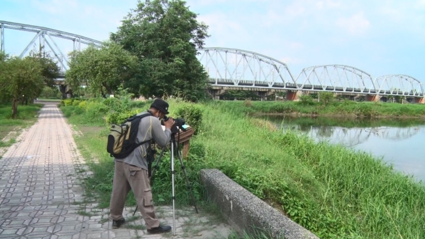 當地居民:「(舊鐵橋濕地生態公園)大樹區的河濱公園,這裡有三級古蹟舊鐵橋,在這裡我們現在看到的,白天早上可以看到大武山那邊很多山。」