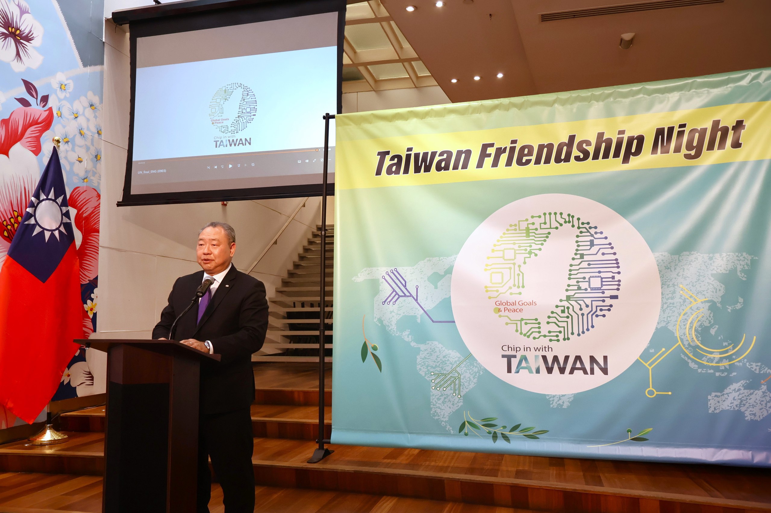酒會以播放本(113)年聯大推案短片「台灣晶緣」揭開序幕,然後由中華民國駐美國代表俞大㵢致詞,歡迎來自全球各地的友邦及理念相近夥伴出席酒會。