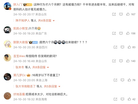「這種行為才六個月啊?這有威懾力嗎?幹半年進去歇半年,出來後繼續幹,對有前科的人估計毫無威懾力。」