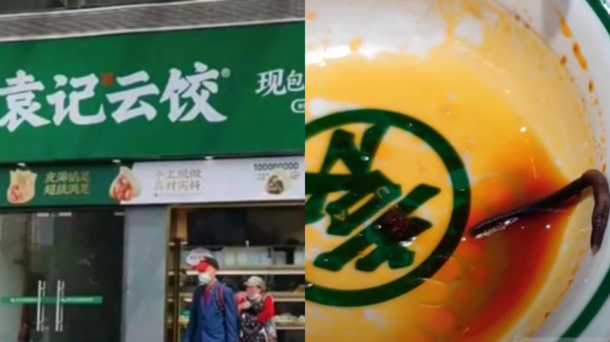 綜合陸媒報導,11月19日,焦先生在北京市袁記雲餃六道口店花費14元(人民幣,下同)購買了一份鮮肉雲吞面,但食用到最後時發現了一條約長3厘米的黑紫色不明物體。
