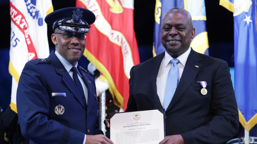 儀式上,美國參謀長聯席會議主席布朗(Charles Brown, Jr.)將軍為奧斯汀戴上勳章,表彰他在過去45年,為美國軍隊作出的貢獻。