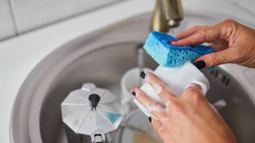 把廚房海綿和碗碟一起放進洗碗機,是一種快速消毒的簡單方法。