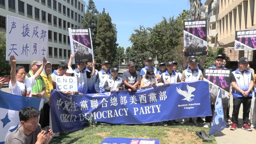 【新!唐!人:北京時間2025年04月23日訊】四川成都勇士在天橋掛出反共條幅,在網上引起熱議。日前,洛杉磯部分華人在中領館集會,聲援這位勇士。集會者打著「聲援成都天橋勇士」、「民主才是方向」等標語,喊著「結束中共」等口號,呼籲更多人了解真相。