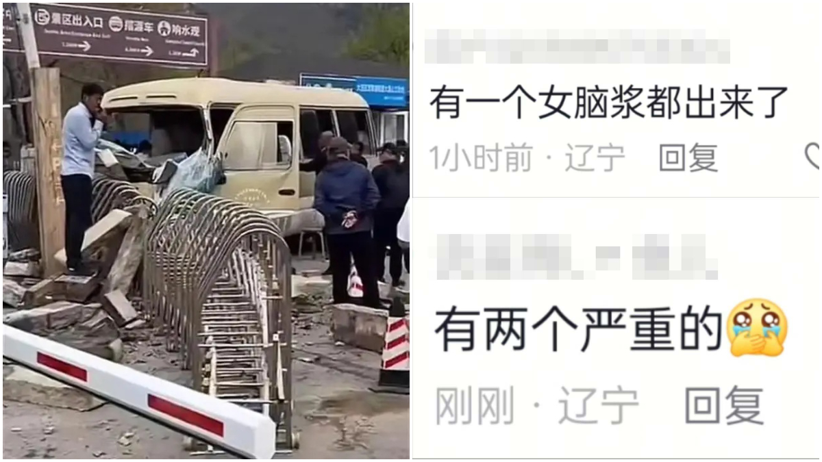 當天景區發布通報稱,事發下午一點半左右,擺渡車只是「撞上景區門口伸縮電動門」,造成「2人輕傷」,「部分乘客擦(挫)傷」云云。