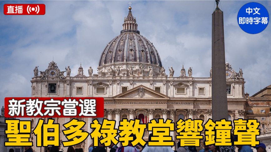【新!唐!人:北京時間2025年05月09日訊】新教宗的身分在俯瞰聖彼得廣場的聖彼得大教堂的主陽台上宣布。美國69歲樞機主教羅伯特‧普雷沃斯特(Robert Prevost)成為歷史上第一位美國籍的教宗。普雷沃斯特隨後出現在陽台上,向廣場上的信眾們示意。 美東5月8日下午,新!唐!人:、大紀元對英文新!唐!人:節目(NTD Newsroom)進行了網絡轉播(即時翻譯字幕)。