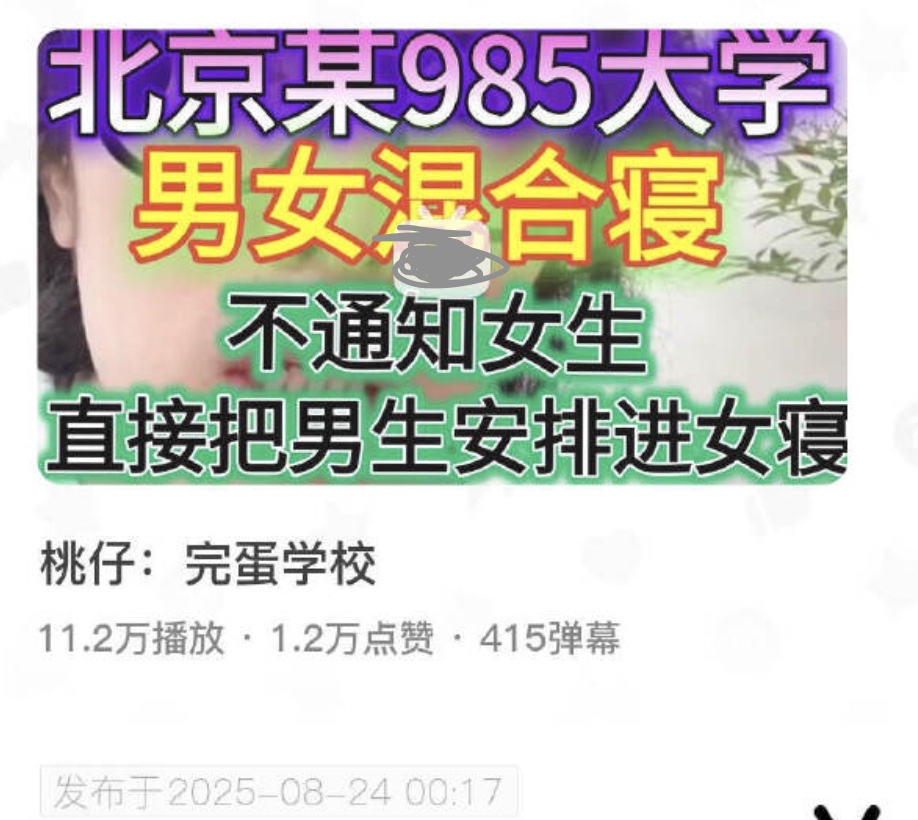 【新!唐!人:北京時間2025年08月26日訊】近日,位於北京的中國人民大學在未通知學生的情況下,安排男生入住女生宿舍樓,造成女生生活不便,學生網絡發聲譴責該校策過程完全「黑箱操作」,聲音遭到封殺和壓制。