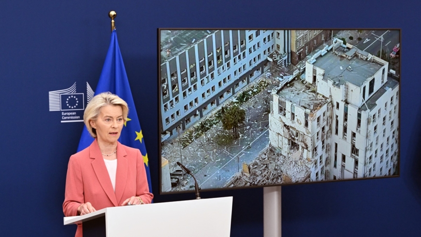 歐盟委員會主席馮德萊恩:「我對基輔遭受的襲擊感到憤慨,我們的歐盟辦事處也遭到襲擊。這再次嚴峻地提醒我們,事態危急。這就是我們對俄羅斯施加最大壓力的原因。」