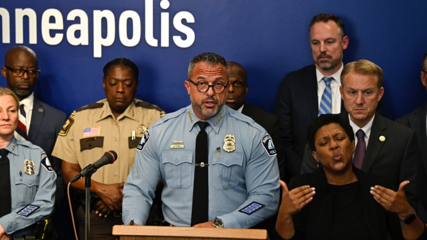 記者:「週四,警方確認明尼蘇達州明尼亞波利斯市的槍擊案中,總共20名受害者遭受槍傷,其中包括一名8歲和一名10歲的死亡兒童。15名傷者是年齡介於6至15歲的兒童,另有3名80多歲的成人受傷。目前仍有多名受害者在醫院接受重症監護。」