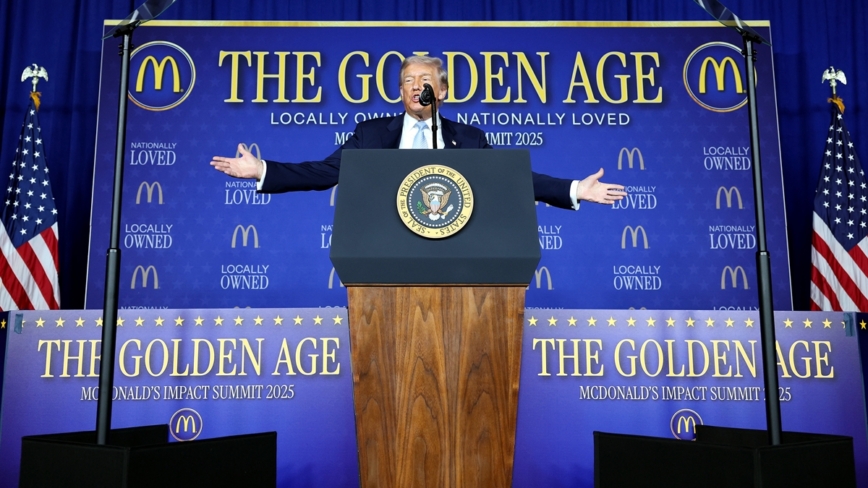 美國總統川普週一在華府出席了「麥當勞影響力峰會」,並發表演講。