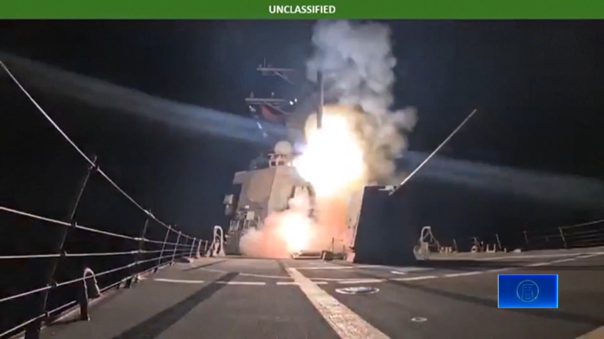 五角大樓發布的一段影片顯示,正在從軍艦上發射導彈,迅速升空。