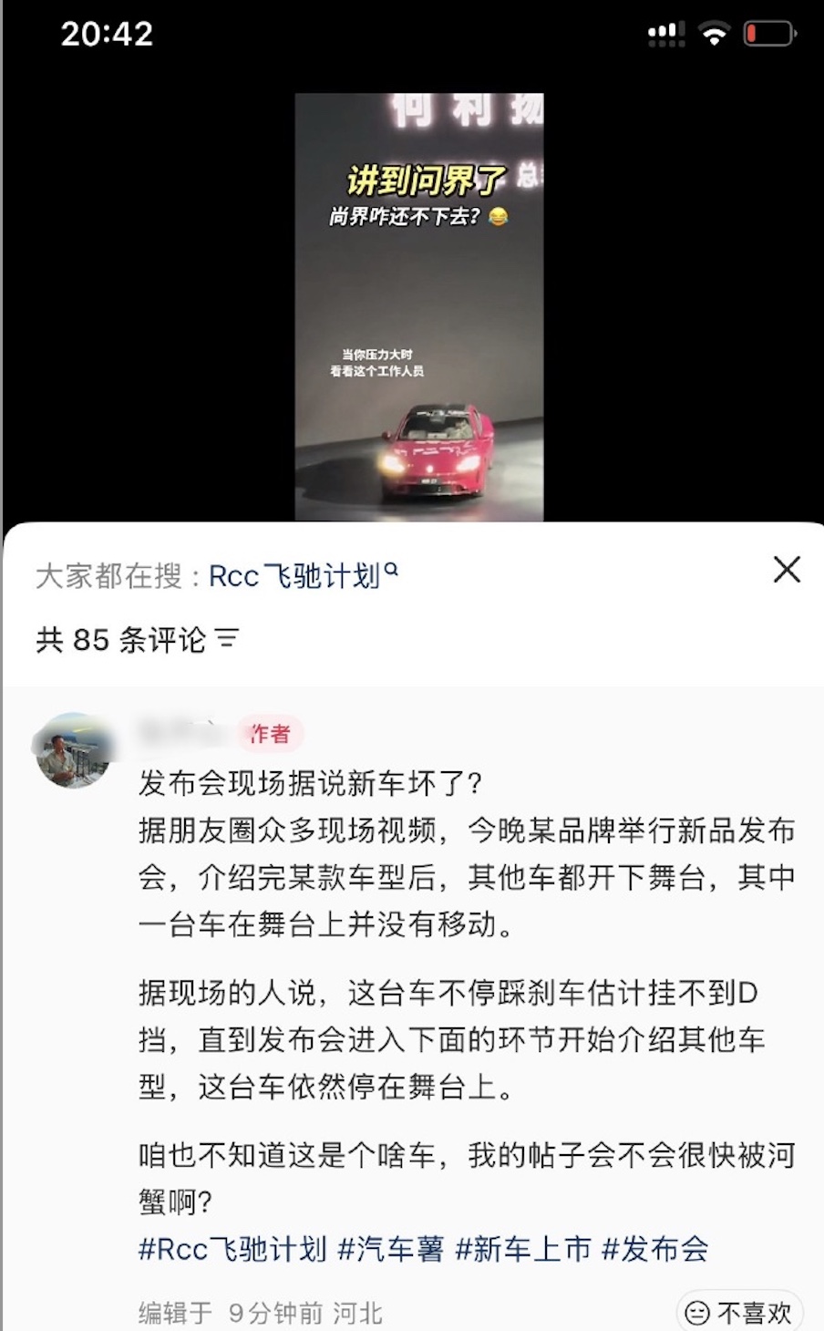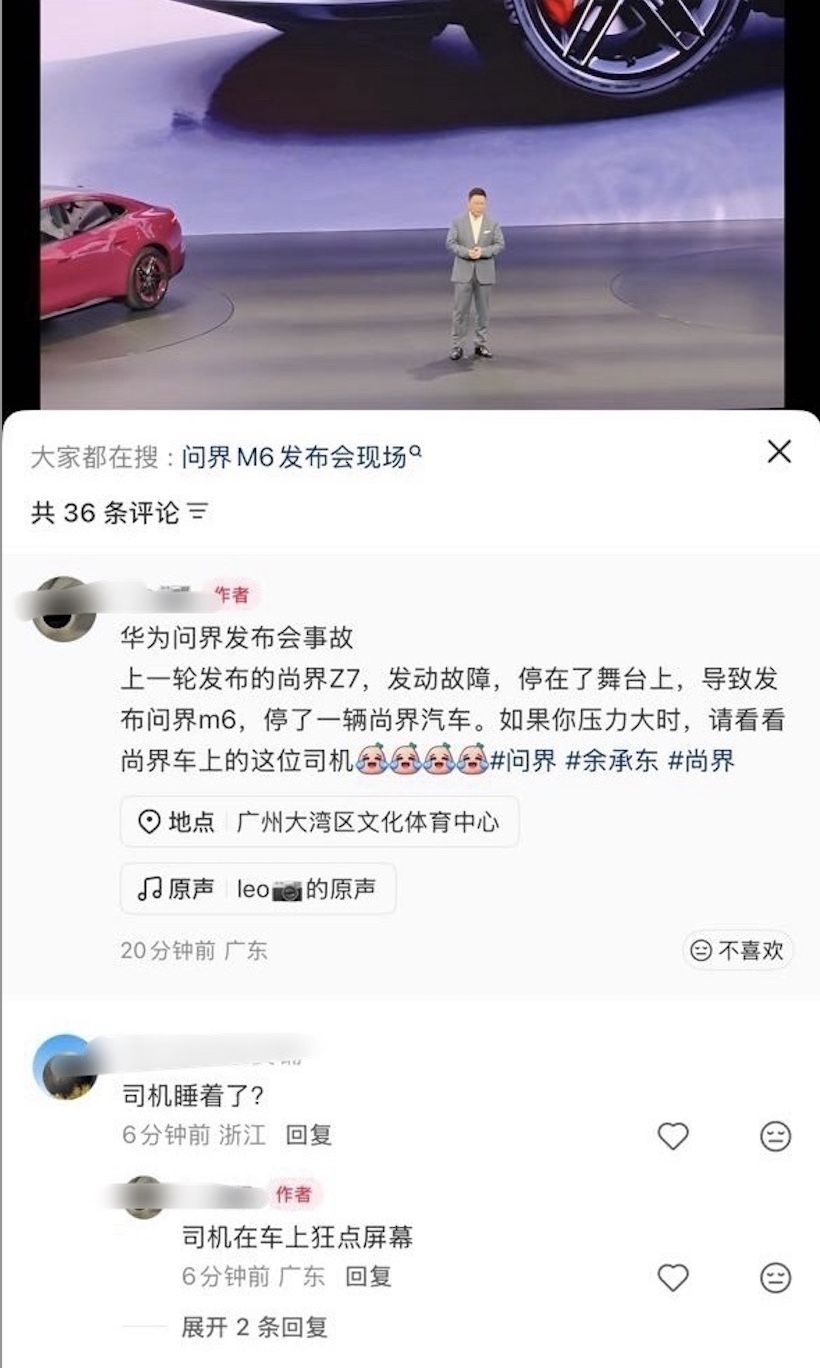 但此聲明很快被網友打臉,網友指出,網傳車輛離場視頻是「彩排補拍」,因背景觀眾席是空場。另外,現場司機的慌亂明顯與聲明不符,還有就是現場直播關閉評論區,更是顯示出華為方「心虛」。