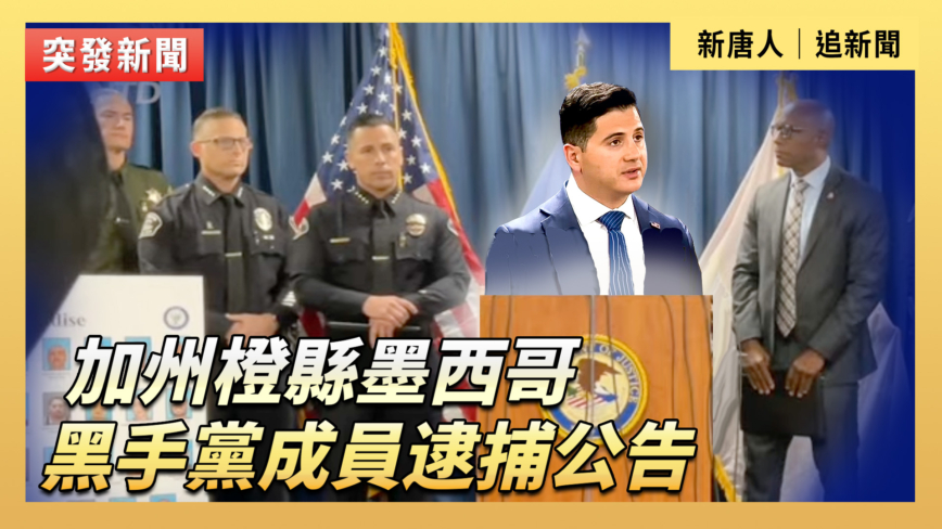 【新!唐!人:北京時間2026年04月24日訊】美東4月23日上午11:00,美國聯邦檢察官助理比爾·埃薩利 (Bill Essayli) 與聯邦調查局洛杉磯分局主管助理局長阿基爾·戴維斯 (Akil Davis)、聖安娜警察局長羅伯特·羅德里格斯 (Robert Rodriguez) 和阿納海姆警察局長曼尼·西德 (Manny Cid) 共同宣布,今日逮捕了25名墨西哥黑手黨監獄幫派成員及其同夥。新!唐!人:、大紀元進行網絡直播,即時翻譯字幕。