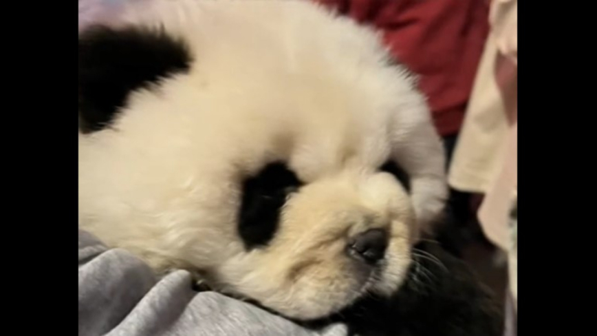 近日,有網友爆料,有人將狗的毛髮染成黑白色,偽裝成熊貓的樣子,20元(人民幣,下同)一次有償讓遊客抱著拍照。小狗眼睛疑似因染料刺激難以睜開,卻異常乖巧,質疑其主人給注射了鎮定劑。