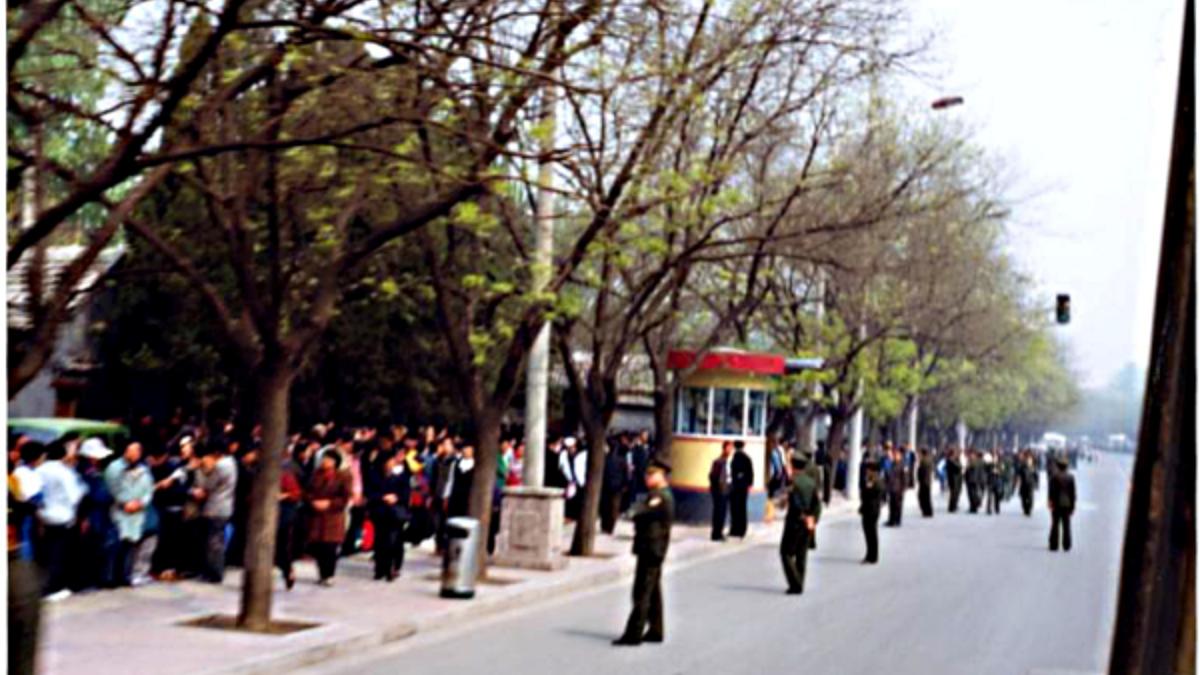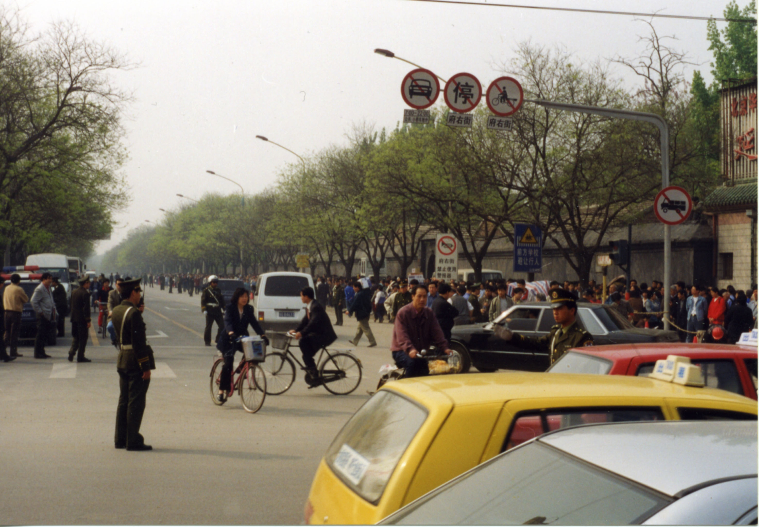 那天早上,還有人看到,越來越多的法輪功學員從四面八方來到府右街北口。開始時警察把守著,不讓他們進入府右街。大家只能在街口的東西兩側靜靜地站著。