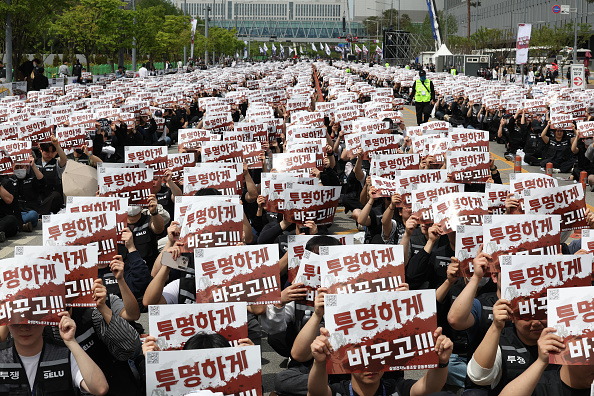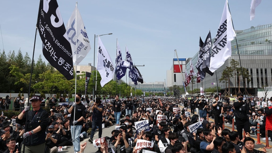 三星電子數萬名員工23日集會抗爭,要求調高薪資和獎金。許多員工前往首爾以南的平澤(Pyeongtaek)廠區參加抗議活動,隨後在昨天晚間10時至今天清晨6時夜班時段未出勤。