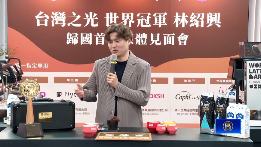 【新!唐!人:北京時間2026年04月26日訊】WCC世界盃拉花大賽,4月10日到12日在美國聖地牙哥舉行。來自台灣的咖啡師林紹興獲得冠軍,20日他在台北分享獲得冠軍的心路歷程。