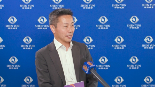 山下芳晴:「中國的傳統文化和日本有所不同,日本也有古典舞。我原以為是相似的,但今天親眼看到神韻的中國古典舞,才知道截然不同。那種優雅,以及超越人類水準的動作,實在令人敬佩。」