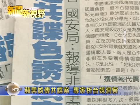 【新!唐!人:2013年11月10日讯】十一月一日,苹果日报引用脸书消息,在未经查证下,误传大.纪.元;记者涉入共谍案,引起大.纪.元;严正驳斥,要求更正。对此,多位专家在本周六将播出的新闻新视野节目中,从更深层面,分析报导影响,尤其是中共严重渗透下,台媒的反应与改变。