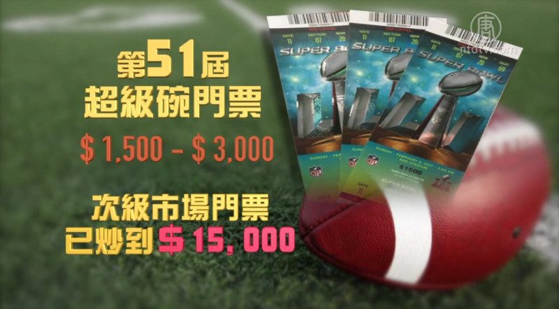 超级碗门票的面值在$1,500和$3,000之间,而在次级市场门票已经炒到了最高15,000美元。