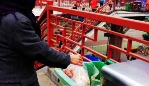 陕老妇人扮乞丐,将行人施舍的食物丢进垃圾桶(网络图片)