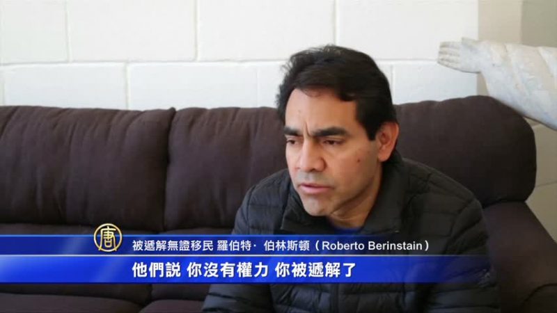 被递解无证移民Roberto Berinstain:“我去更新工作许可证时他们收走了。他们告诉我,我有递解令在身;他们说,‘你没有权力,你被递解了’。他们把像我这样无辜的人踢出去不公平。美国有上百万和我一样的人,在这里有家庭,守法生活。这不公平、太糟糕了,不应该这样。”