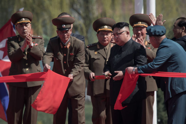 金正恩4月13日召集全球赴朝的近200名外媒记者,竟然只是为了一个居民楼的剪彩仪式。(ED JONES/AFP/Getty Images)