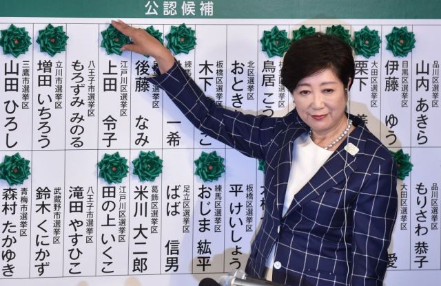 东京都知事小池百合子新成立的“都民第一会”和友党在都议会127个议席中拿下超过半数。(KAZUHIRO NOGI/AFP/Getty Images)