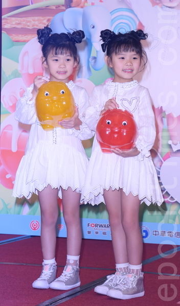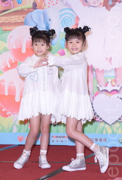 台湾双胞胎童星组合“左左右右”20日举行新专辑《奇幻心乐园》记者会。(黄宗茂/大.纪.元;)