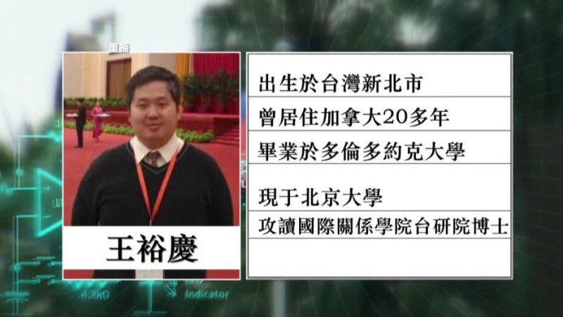 王裕庆,现年39岁,出生于台湾新北市,曾在加拿大居住二十多年,毕业于多伦多约克大学东亚研究系,目前是北京大学国际关系学院台湾研究院的博士生。